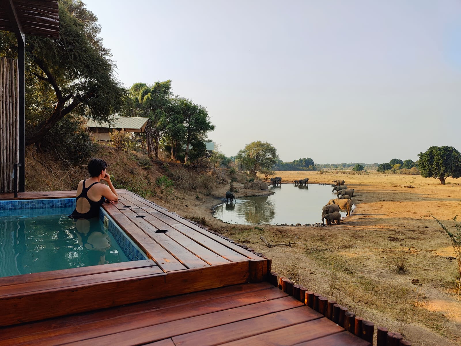 Kavinga Safari Lodge offers exceptional opportunities for wildlife and bird photography thanks to its specialized hides. The termite mound–style photographic hide provides eye-level views of elephants, lions, and other iconic wildlife as they approach the waterhole, allowing photographers to capture intimate, close-up shots in natural light.